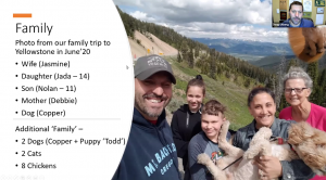 Family:  Seen in the photo is Doug and his mother, his wife, and his kids at Yellowstone National Park (wearing a Yosemite hat: well played Doug).  He and his wife have two kids, daughter Jada (14) and son Nolan (11) along with 2 dogs, 2 cates, and 8 chickens.