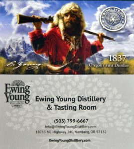 our primary presenter for the meeting with a HIGHLY ENTERTAINING story about the place and its namesake…Ewing Young…Chehalem Valley pioneer, buried a short distance away under an oak tree.  Copies of the book Doug is holding ARE available at the Newberg Public Library…. confirmed by Leah.  Doug is a fascinating story-teller…and he regaled us with many anecdotal accounts from Ewing Young’s life.  It is highly suggested to not only read the book, but to visit the distillery during regular open hours to listen to more of Doug’s stories….not only of Ewing Young, but the history of the Chehalem Valley in the early years of European-American settlement.  Their website is FULL of interesting historical “tid-bits”… including hours of operation…check it out!