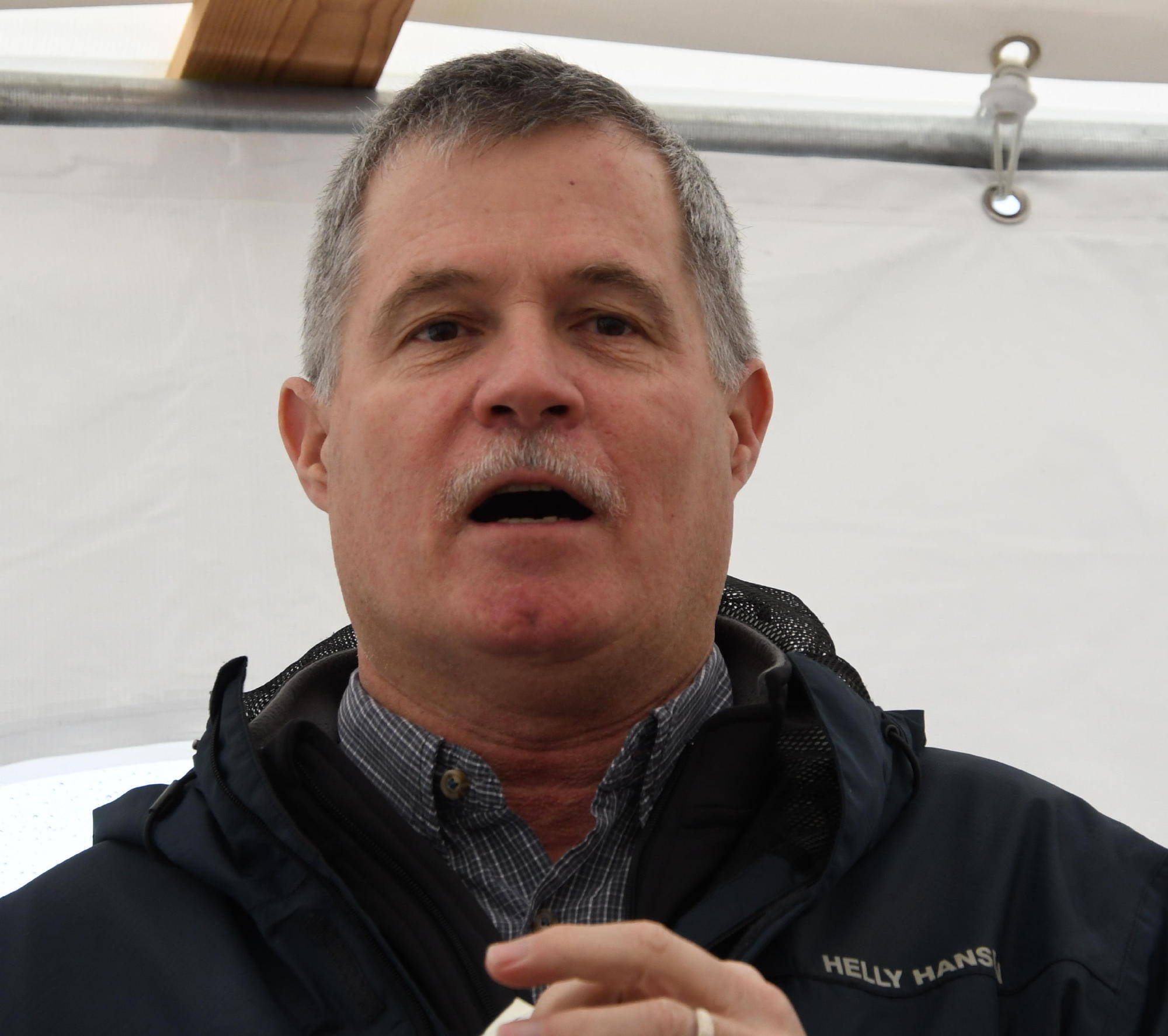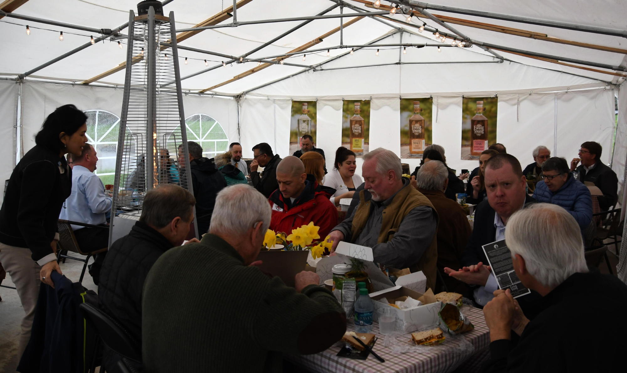 We met  in a tent immediately outside the barn housing the distillery.  The site forced some changes to our usual routine, so…with the rain on the tent’s roof immediately overhead, providing a nearly-musical aural backdrop to our proceedings, then, per usual, ever-inspirational President Om…